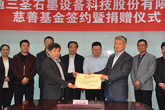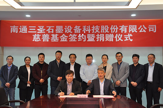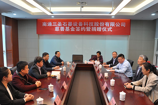 2020年4月21日,“南通三圣石墨設備科技股份有限公司慈善基金簽約暨捐贈儀式”在南通開發(fā)區(qū)能達大廈401會議室召開,該項基金將主要用于開發(fā)區(qū)安老扶幼、助學助醫(yī)、扶貧賑災、助殘濟困、公益環(huán)保等慈善公益事業(yè),推動該區(qū)慈善事業(yè)的健康發(fā)展。