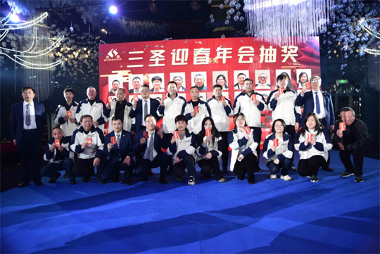 會場的三圣人很快樂,但也不能忘了依然在各個工地中堅守崗位的其他同事。通過現(xiàn)場視頻聯(lián)系,也向他們送去了新春的祝福。