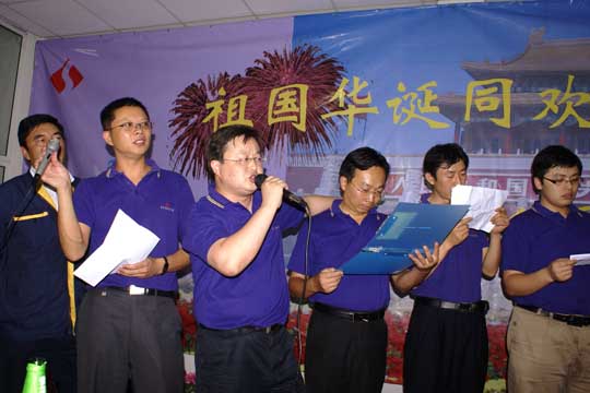 9月22日,全體三圣人歡聚一堂,同慶祖國華誕,共迎中秋佳節(jié)。感人至深的手舞《感恩的心》、詼諧幽默的小品《三圣家庭》、激情澎湃的詩朗誦《我的祖國》、獨(dú)樹一幟的三句半《話說三圣》以及相聲、快板書等一個個三圣人自編自演的節(jié)目集中體現(xiàn)了三圣大家庭的企業(yè)文化精髓,同時表達(dá)了對祖國母親的深深祝福。由三圣人自己點(diǎn)燃放飛的69盞祝愿燈將聯(lián)歡會推向了高潮,大家祝愿三圣事業(yè)六六大順,三圣好運(yùn)長長久久。董事長帶領(lǐng)高管團(tuán)隊合唱的一曲《朋友》充分彰顯了三圣管理層的超強(qiáng)凝聚力和戰(zhàn)斗力。晚會在大合唱《同一首歌》的歌聲中圓滿結(jié)束。