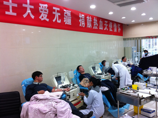 1月19日,患病同事趙亞東的家屬向公司發(fā)出了緊急求援,希望能有同事為趙亞東定向捐獻(xiàn)成分血。短短的半小時,質(zhì)檢部劉小冬、朱浩,國際部石玉成,事務(wù)部嚴(yán)建新在殷總的帶領(lǐng)之下迅速趕到市血站下屬的愛心獻(xiàn)血屋獻(xiàn)血。雖然遺憾的是,由于捐獻(xiàn)成分血對捐獻(xiàn)人的各項身體指標(biāo)要求較高,五人均未達(dá)到要求,但他們的善舉仍然讓趙亞東的家屬非常感動。與此同時,公司、工會、愛心基金會聯(lián)合發(fā)出了為趙亞東獻(xiàn)血倡議,率先得知消息的科室員工積極響應(yīng),紛紛簽字響應(yīng)獻(xiàn)血倡議,稍后得知消息的生產(chǎn)部員工也是積極響應(yīng),紛紛表示愿意為趙亞東獻(xiàn)血,甚至考慮到春節(jié)期間的用血。